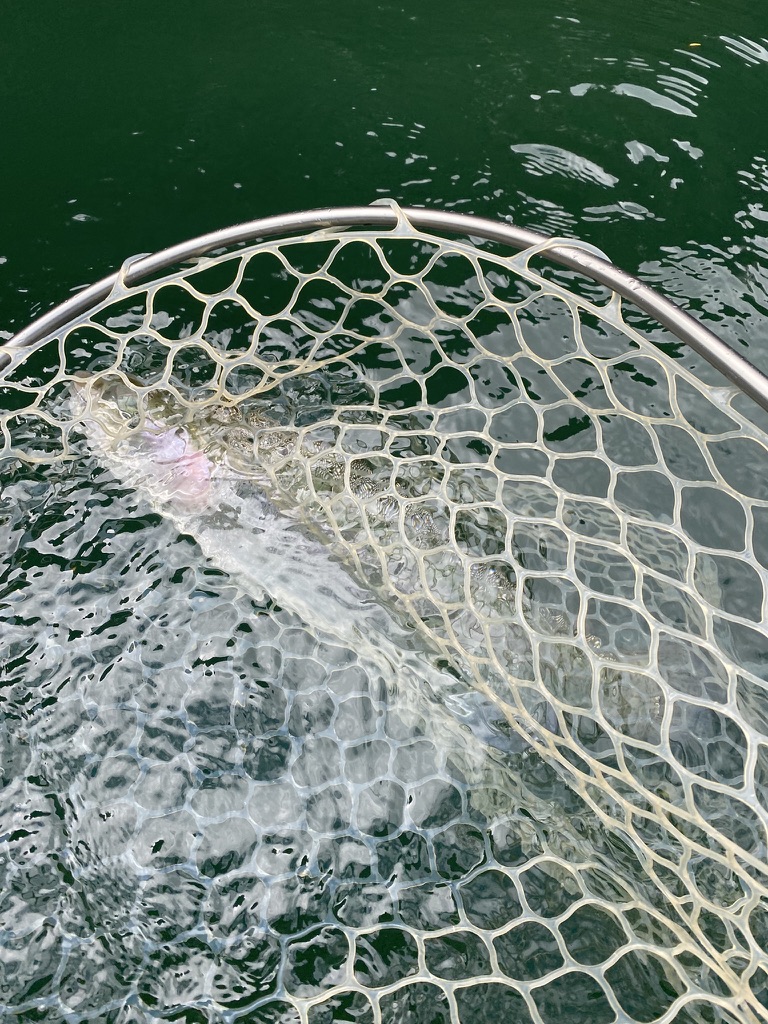 菅沼も大尻沼も面白いのは、釣るのは結構難しいのですが、フライはドライに出ることです。逆にマラブーはなかなか釣れない。ベイトのワカサギはいるのですが、どこのレンジに入っているかわからないので攻めにくい。沼自体は広く深いので、20−30m深いところにベイトが入るとそういったのを少なくともフライで狙うのはきつい。ルアーもカウントダウンばかりが長くて手返しがどうしても悪くなってしまいます。