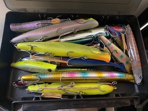 その中で、ダイワのカルバ73Sやバンクなどは小さいフォルムでゆっくり動き、距離も出るのでレギュラーメンバーに入れたいルアーに見えてくる。ワスプスラローム68Sも飛距離と小フォルムの点で同じく良いがこちらはS字の動きを出すので、これもバリエーションで揃えておきたい。一方で、カゲロウやアイザーは、イナッコやコノシロがいるくらいだからマッチザベイトにはなっているのだが、これは出番が少なくなった。